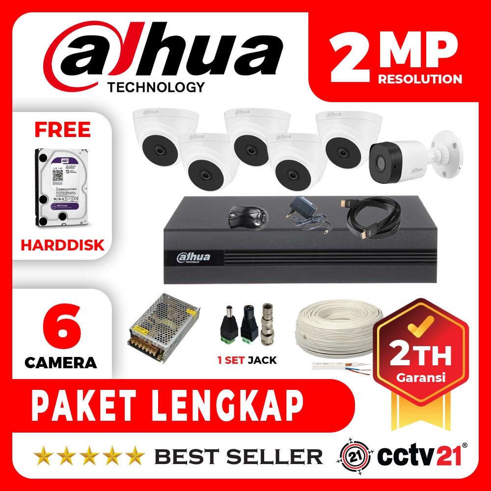 Paket Lengkap CCTV DAHUA 6 Channel Kamera 6CH 2MP FREE Kabel +Harddisk HDD