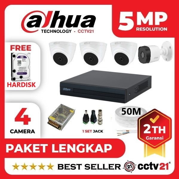 Paket CCTV DAHUA 5MP 4 Channel Kamera Camera + Kabel 50M Lengkap Tinggal Pasang Harga Promo