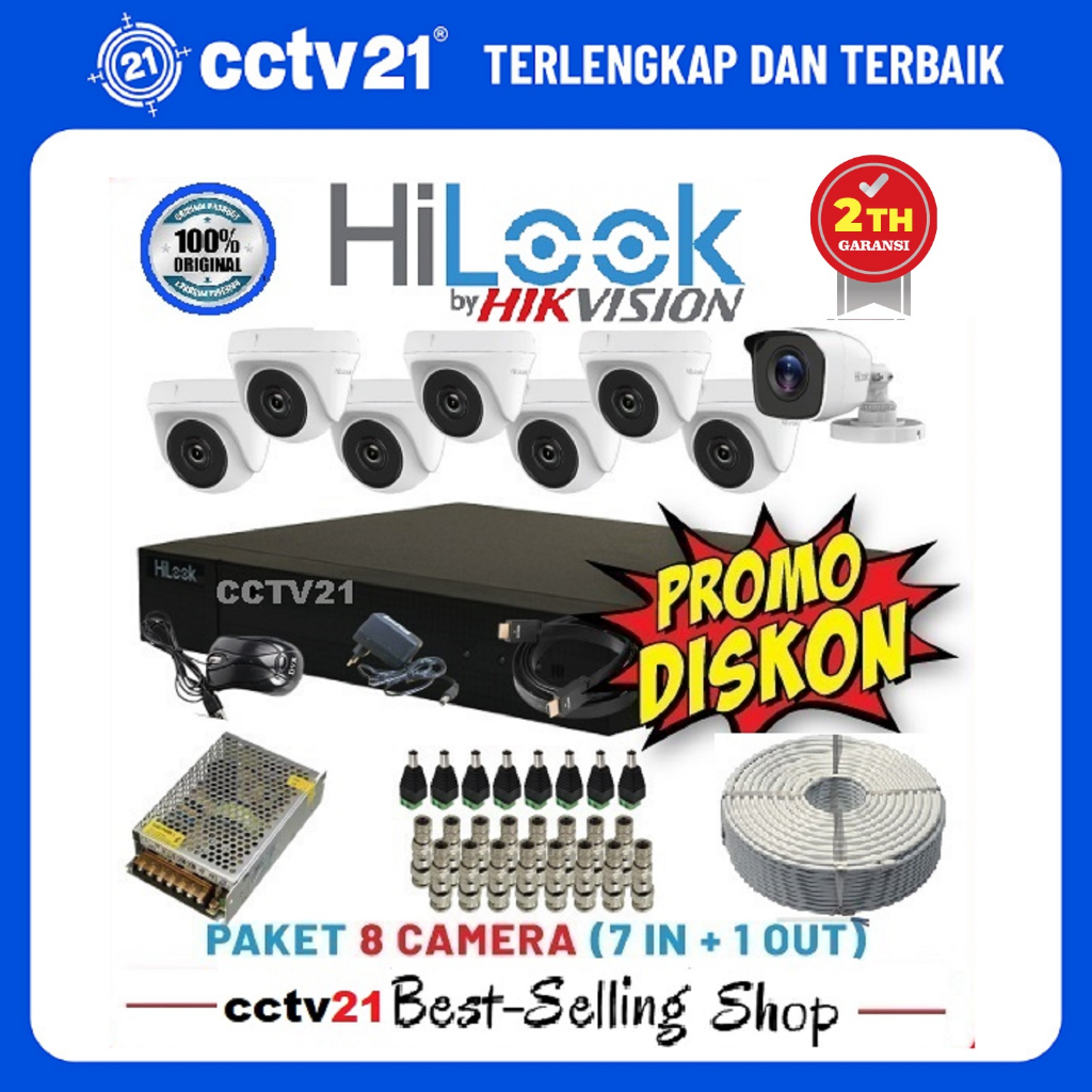 Paket CCTV 8 Kamera HiLook 2MP DVR 8CH + Kabel 100M Harga Promo CCTV21