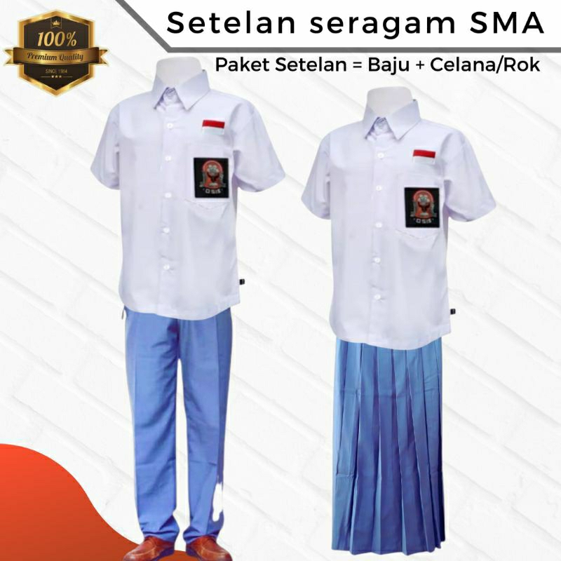 Seragam sekolah SMA Perempuan Laki Laki Setelan Lengkap Lengan Pendek