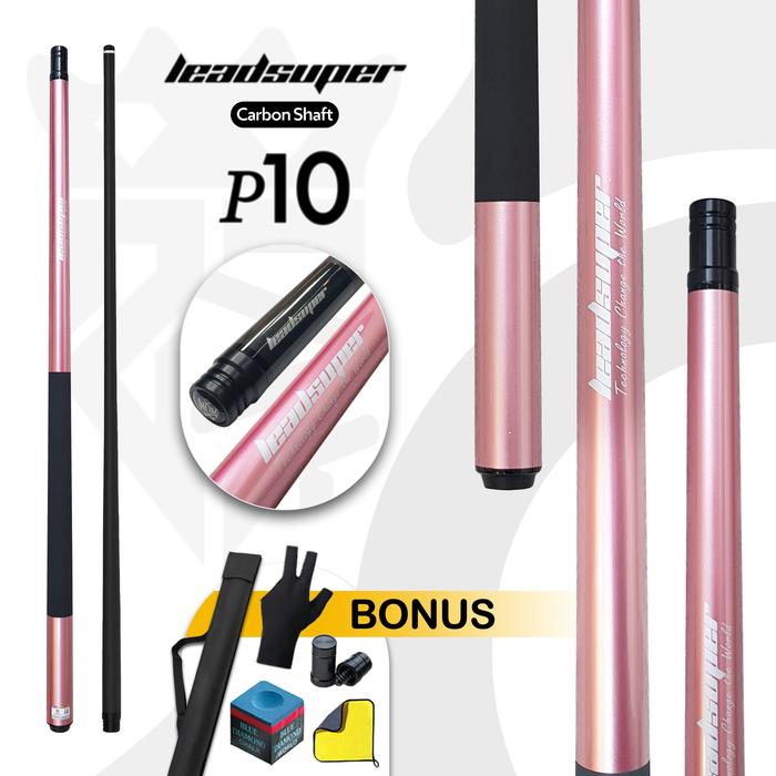 Leadsuper P10 Play Cue Stick Carbon Low Deflection Stik Billiard - Paket Lengkap Billiard Aksesoris - White