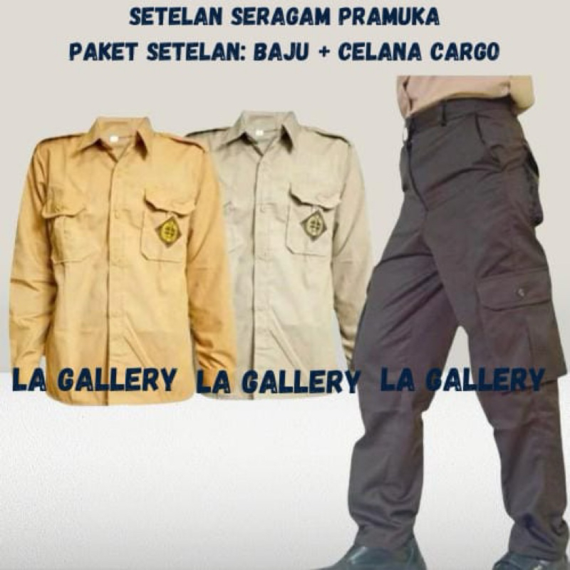 Seragam Sekolah - Setelan Pramuka Lengkap SMP SMA Putra Laki-Laki penggalang saku 2 panjang dan celana cargo panjang