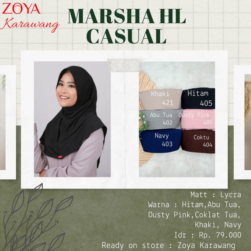 Zoya - Kerudung Jilbab Instan Bergo Pad Polos Marsha HL Casual