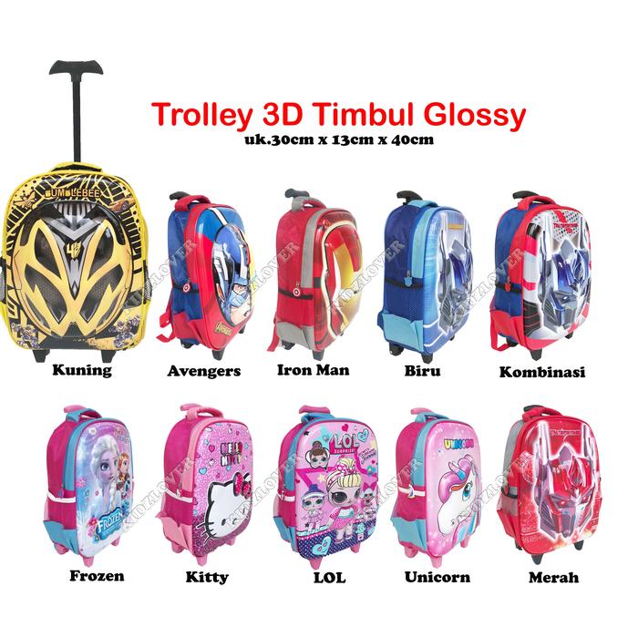 Tas 3D Timbul Koper Ransel Anak Sekolah Sd(Ukuran 16") Trolley Dorong Troli / Tas Troli Anak Laki Laki / Tas Troli Anak