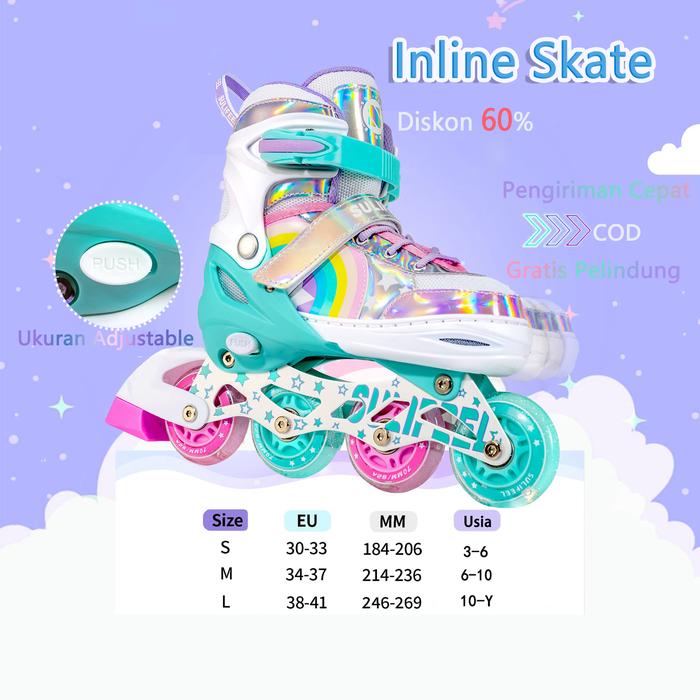 SEPATU RODA IXCE WARNA PINK - ANAK PEREMPUAN - PEMULA - RODA BERCAHAYA - HADIAH UNTUK ANAK OUTDOOR KAKI SKATE INLINE DEWASA - PINK-S (3-6 TAHUN)