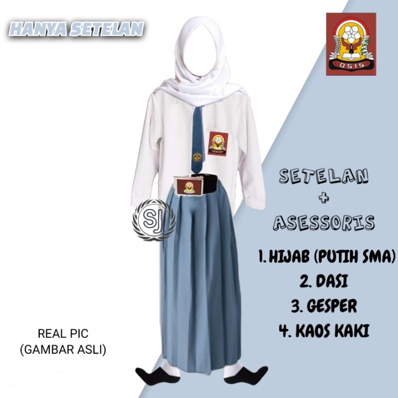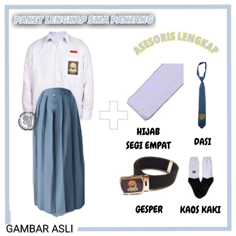 Seragam sekolah paket setelan hijab lengkap kemeja dan rok panjang rempel SMA putri