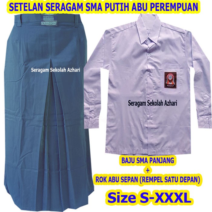 SETELAN SERAGAM SMA PUTIH ABU ABU PEREMPUAN ROK SEPAN-SATU STEL SERAGAM SEKOLAH SMA PEREMPUAN-SERAGAM SEKOLAH SMA