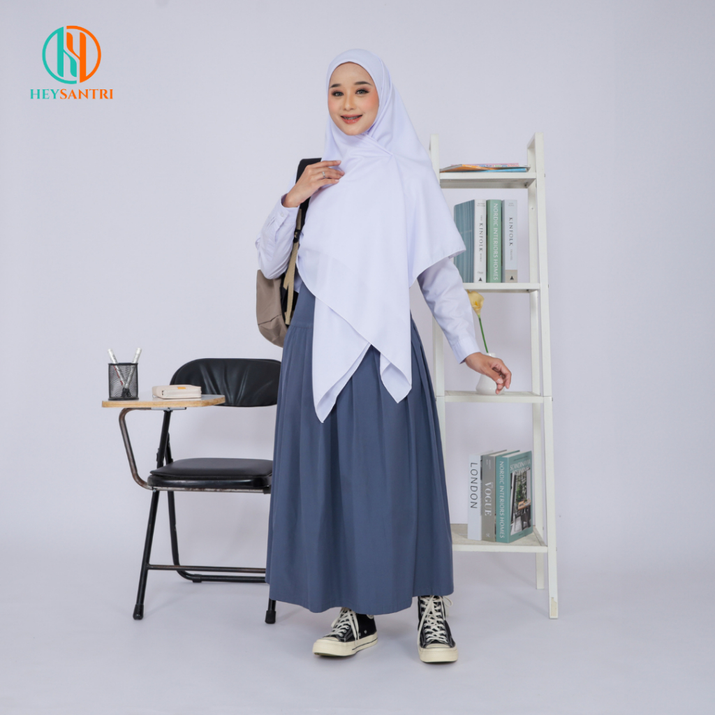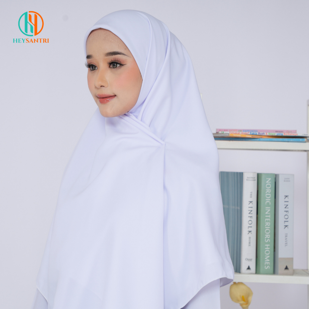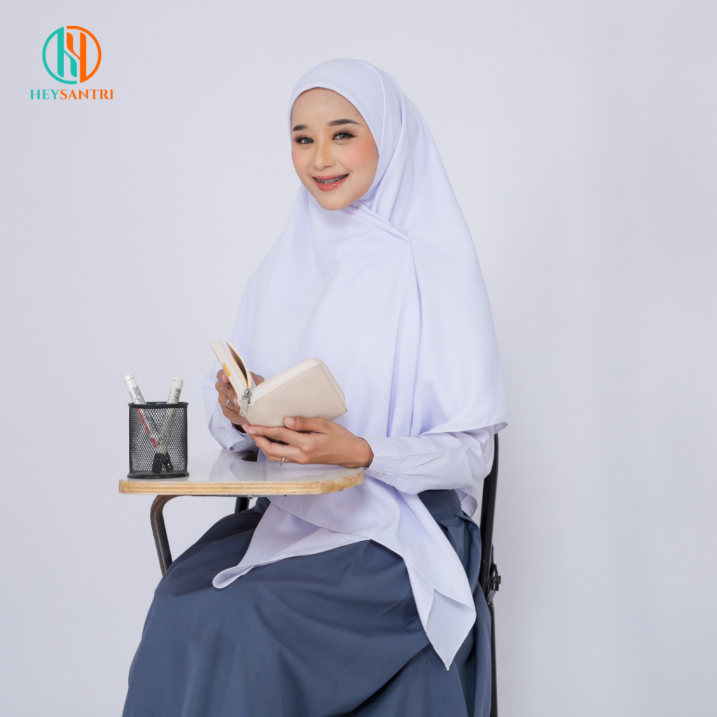 HEYSANTRI - Shaliha Hijab Segiempat 150x150 cm Santriwati/Anak Sekolah Bahan Wolfis | Hijab Putih