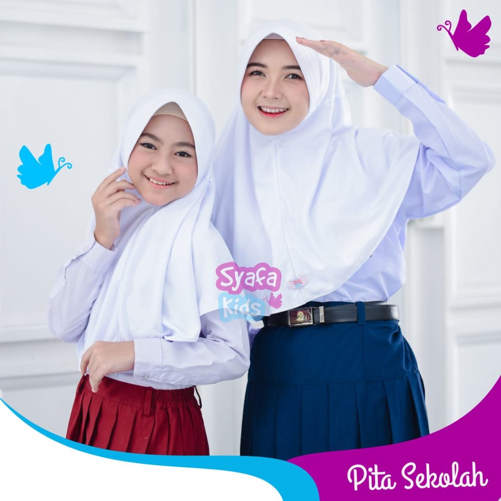 Kerudung Sekolah Anak SD SMP SMA Pita Putih Polos