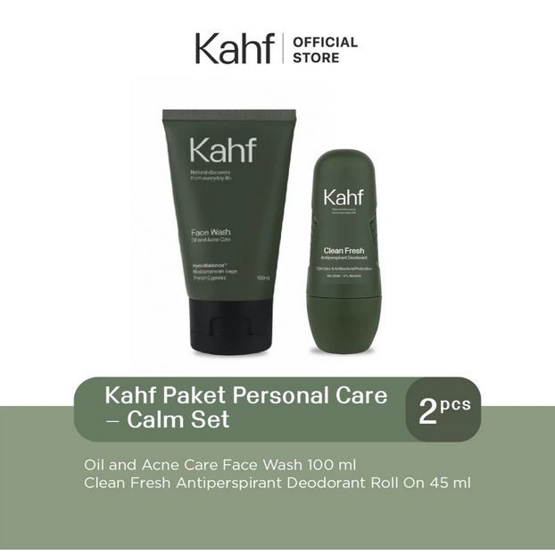 KAHF Paket 2 PCS with DEODORANT Face Wash 100mili + Deodorant Roll On 45mili | Bright Acne Comedo Pore Cleanser Exfolia