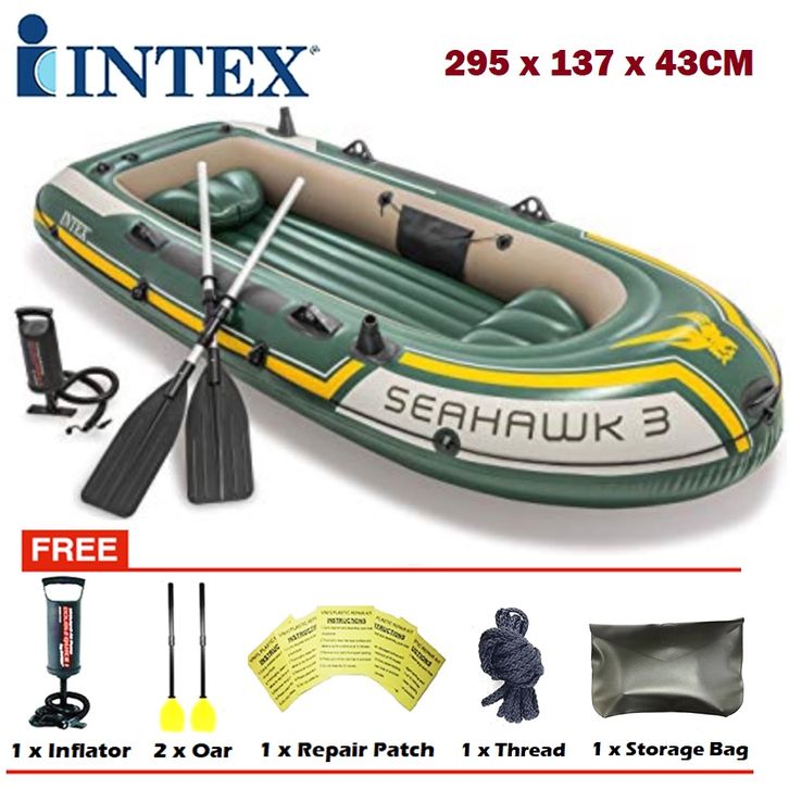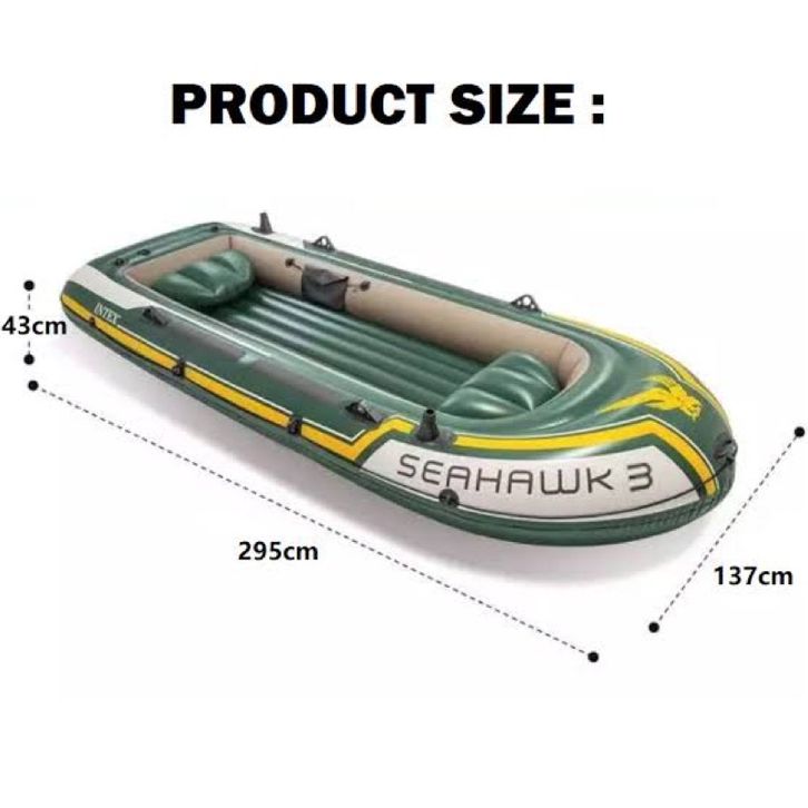 PROMO DuniaKasurAngin - READY INSTANT Perahu Karet INTEX Seahawk 3 68380 BOAT SET 3 Orang - Perahu Boat Intex -