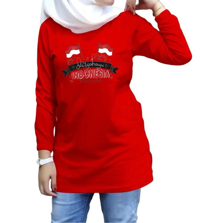 Kaos Oversize Atasan Wanita Kekinian Lengan Panjang Merah Cabe Motif 17 Agustusan