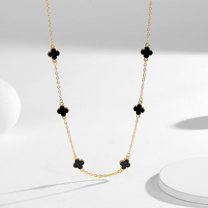 Lanmi jeweIr.yyy Kalung Rantai Berlapis em4.sss Semanggi Empat Daun Aksesoris p3rh1asann Fashion Wanita Dewasa Baja Taha