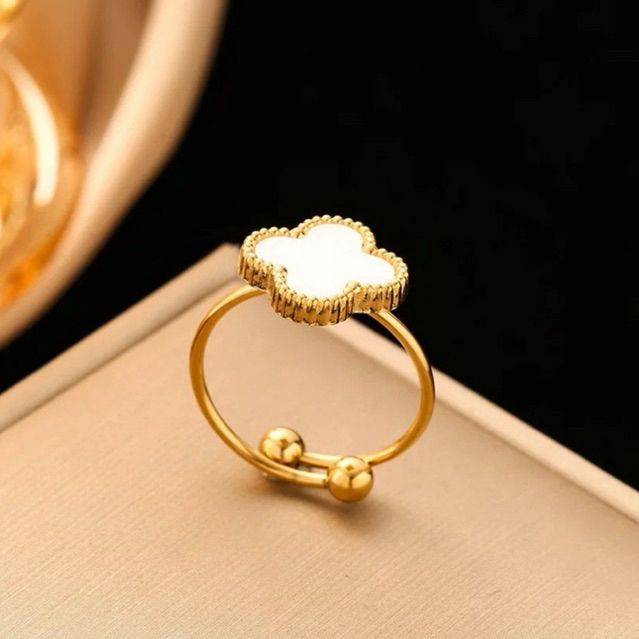 CA01 - Cincin Korea Viral Clover Daun Semanggi Wana Hitam dan Putih Adjust Boba Ring Tipis / p3rh1asann Wanita Pesta Ant