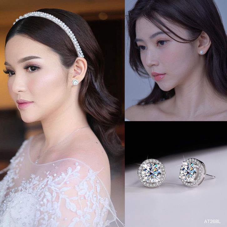 Anting Tusuk t1tan1ummm Soliter Bulat perm4t4aa p3rh1asann Wanita Ala Korea Mewah Dan ELegant