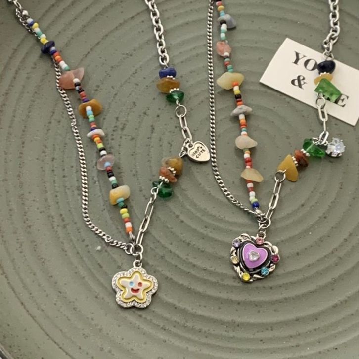 Bettie Kalung Manik-Manik Bintang Stars Love Hati Heart Alloy Colourfull