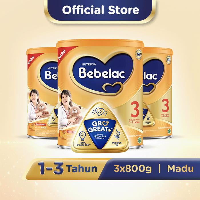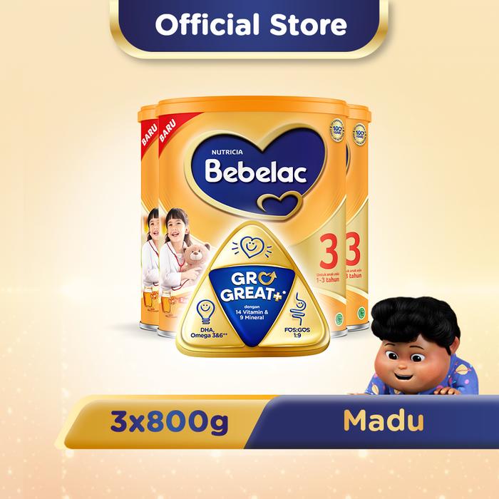 Paket 3 - Bebelac 3 Madu Susu Pertumbuhan Bubuk 800 GR