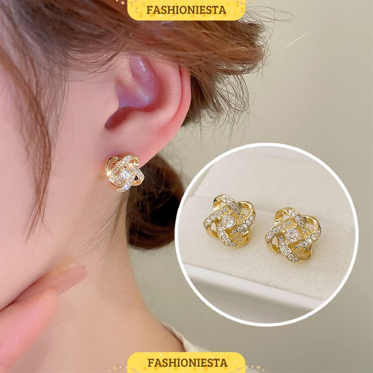 Anting-Anting Crystal Motif Mawar S925 Anti Karat Aksesoris Wanita Korea Style Fashion
