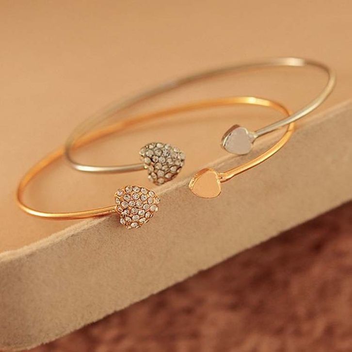 GL001 - Gelang Bangle GROSIRAN Open Cuff Motif Hati Kristal untuk Wanita / Gelang Love / Gelang Bangle Fashion