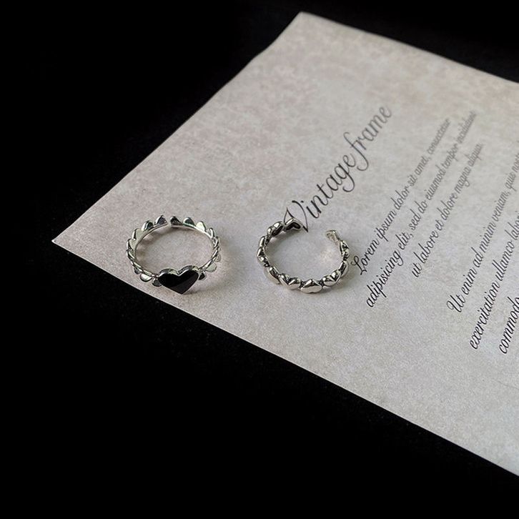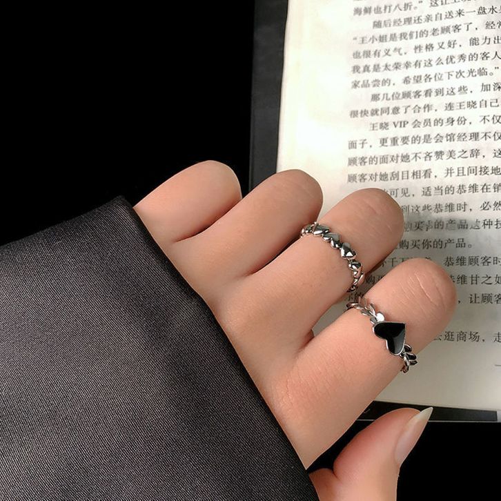 Cincin Love Hitam dan Love Lingkar Elegan Anti Karat Black Love and Circling Love Ring Circling Love Aksesoris Wanita Ko