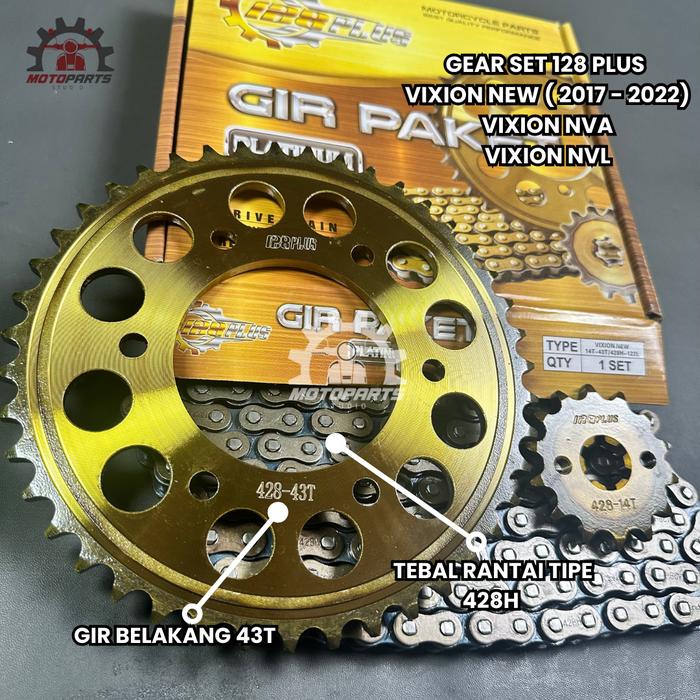 GEAR GIR SET GIR PAKET VIXION NEW NVL NVA 14 43T 428H 128PLUS 901d Motor Motorcycle Racing Rantai Roda