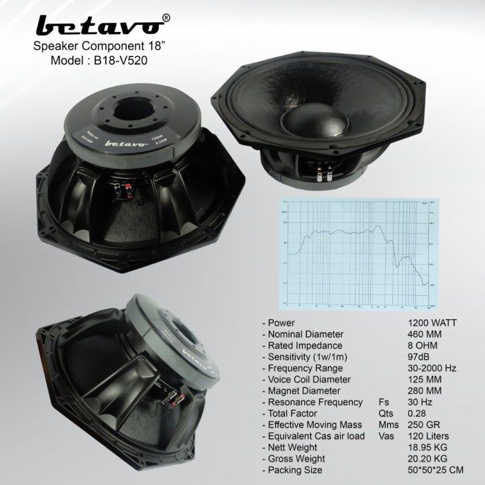 Komponen Speaker BETAVO B18-V520 18 Inch 1200 Watt Original