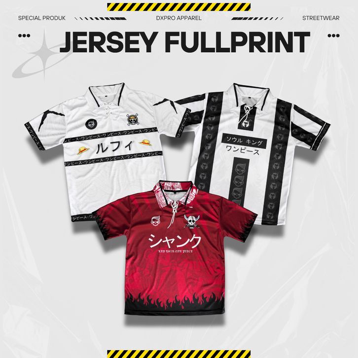 TERLAKU Jersey Fullprint Collar Series Anime One Piece Vintage Retro Unisex afigl