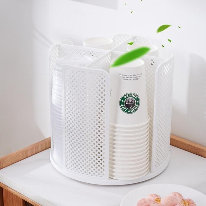 Tempat Rak Gelas Kertas 360 Derajat Rak Paper Cup Rotasi Gratis Organizer Paper Cangkir - black