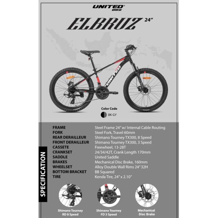 Sepeda Gunung MTB 24 26 Inch United Elbruz Shimano 3X8 Speed