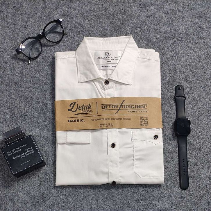 GROSIR Detak Original Kemeja Polos Pria Lengan Panjang Kasual Slim-Fit Putih osard