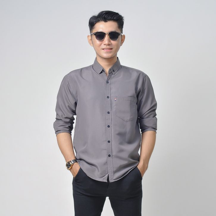 PROMO NZL - Kemeja Pria Lengan Panjang Polos Formal Casual Slimfit obiss