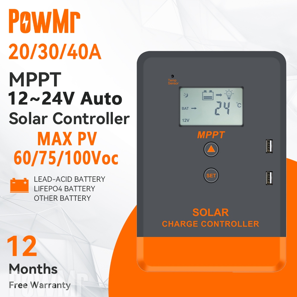 POWMR MPPT PENGENDALI CHARGER SURYA 20A 30A 40A 12/24V PENGENDALI PANEL SURYA TERLARIS