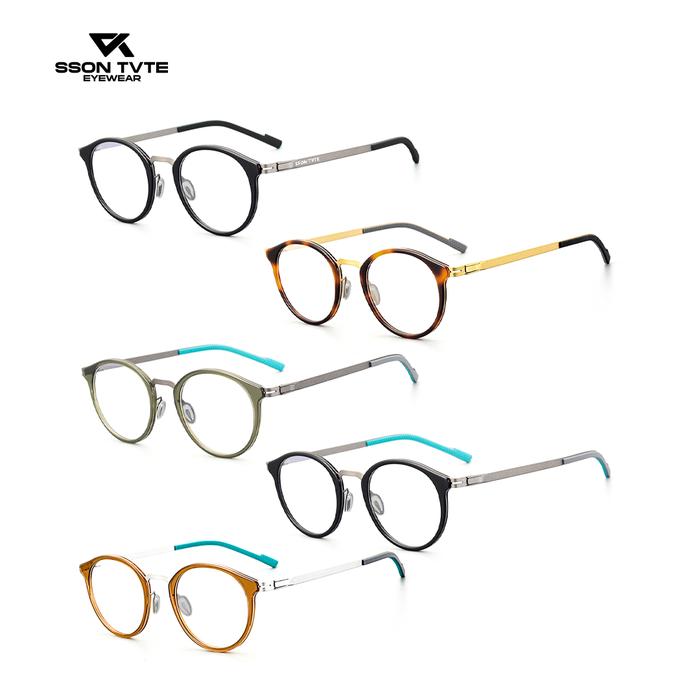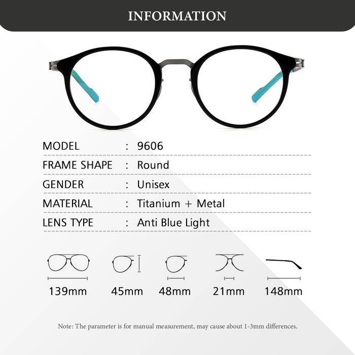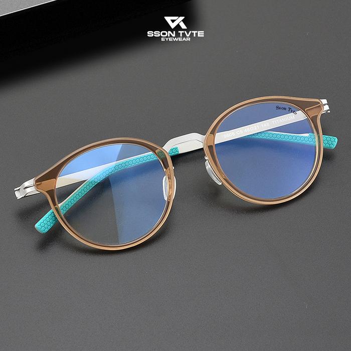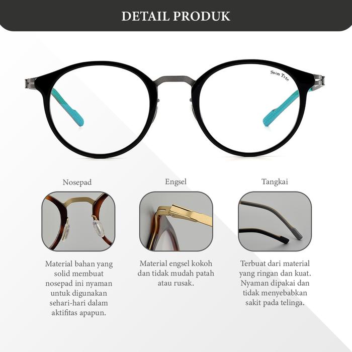 KACAMATA LENSA MINUS PHOTOCROMIC ANTI BLUERAY BULAT PRIA WANITA TITANIUM METAL SSON TVTE 9606 - C1 BLACK GUN, BLUERAY NORMAL