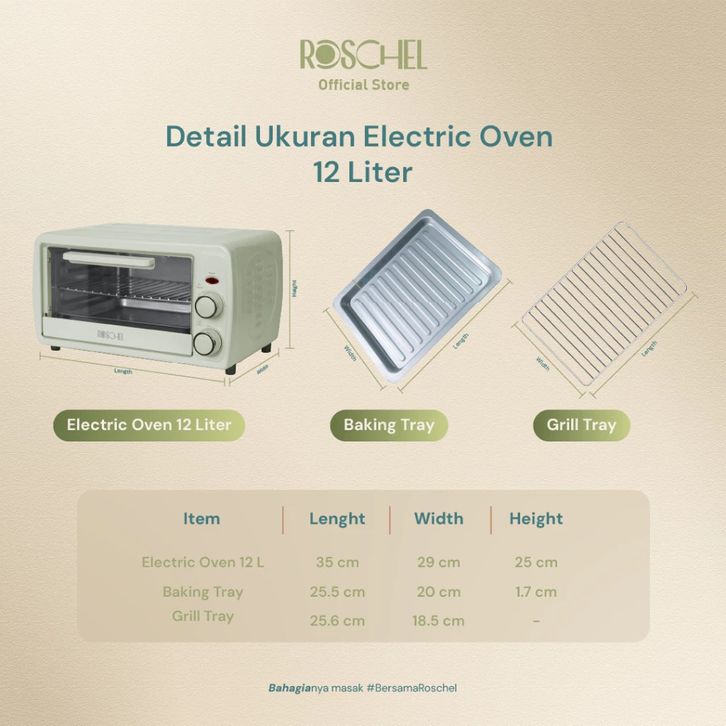 Roschel Electric Oven Low Watt 400 W Kapasitas 12 L Hemat Listrik Pemanas Ganda Atas Bawah Stainless Steel Pemanggang Ku