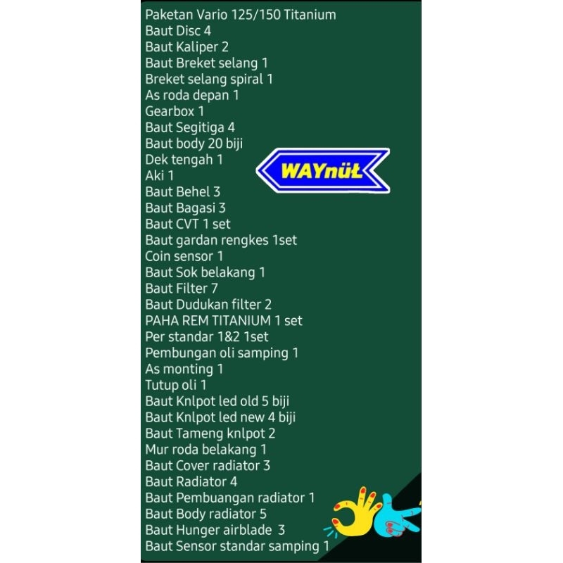 Paketan Full Baut Titanium Vario 125/150 Original Vietnam