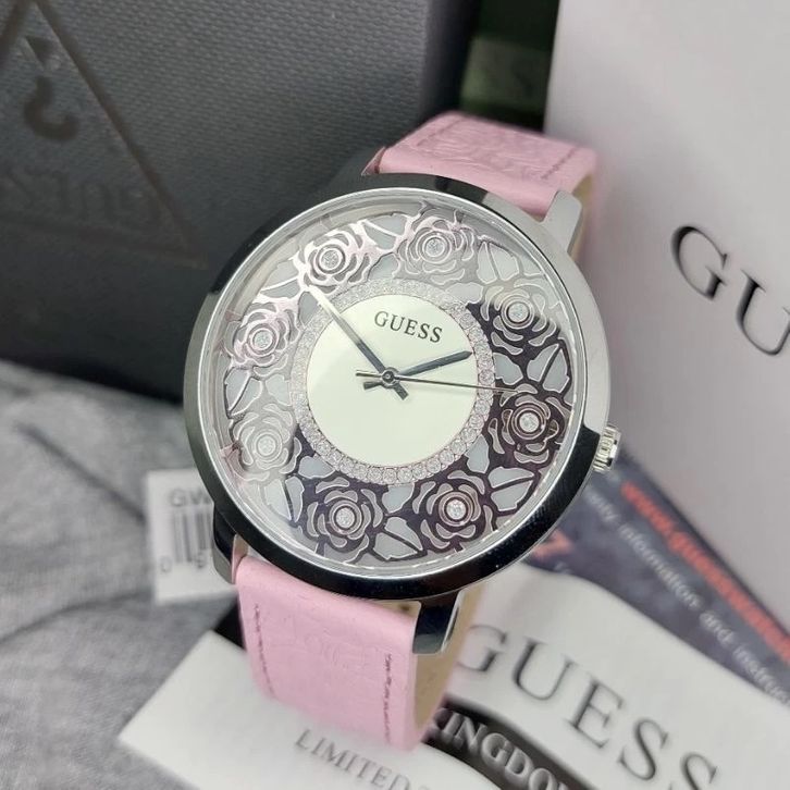 JAM TANGAN WANTTA GUESS GW0529L1 FLOWER PINK LEATHER - FREE ONGKIR