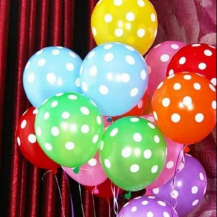 balon motif totol polkadot dan happibestday smail love dll 12 inc. 1 pak isi 100 pcs. 1 pak 1 motif