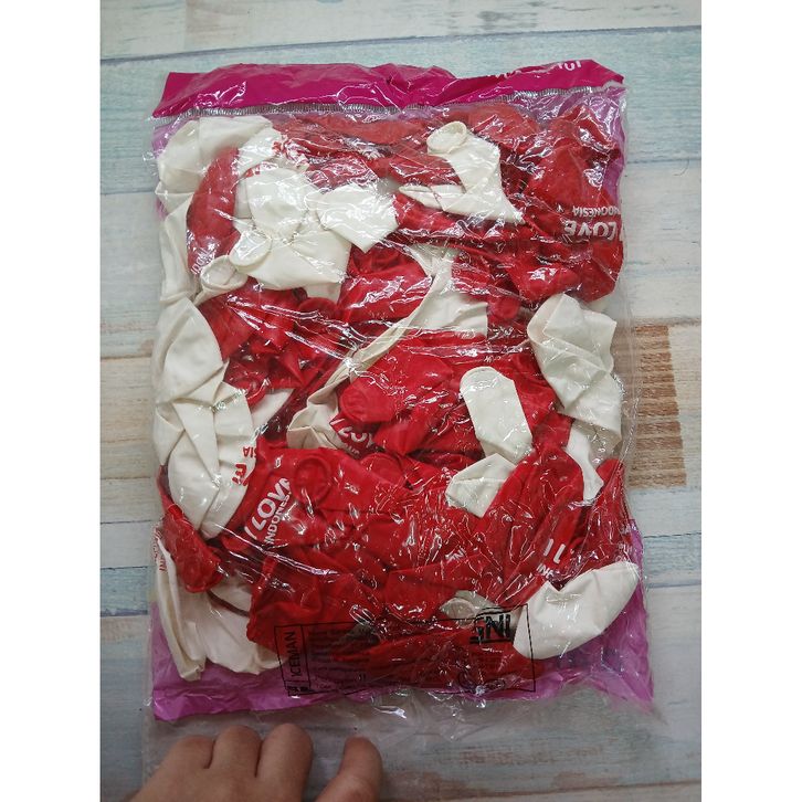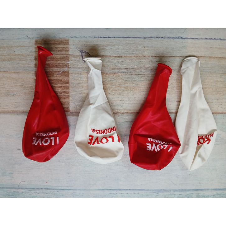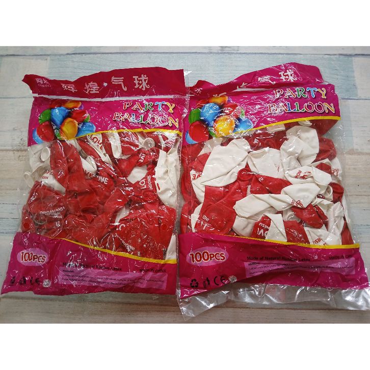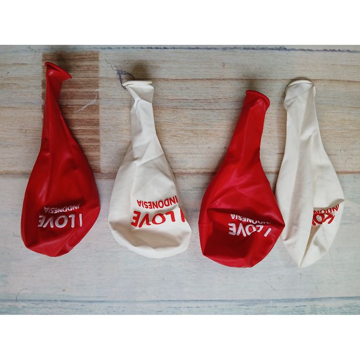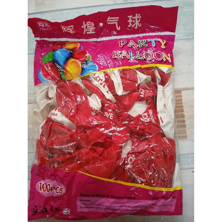 1 PAK ISI 100 PCS BALON LATEX MERAH PUTIH MOTIF PRINT I LOVE INDONESIA/DIRGAHAYU INDONESIA