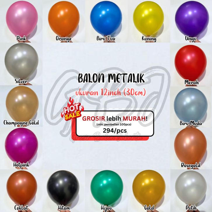 SATUAN Balon METALIK Latex Mengkilap Warna Warni - 12 inch