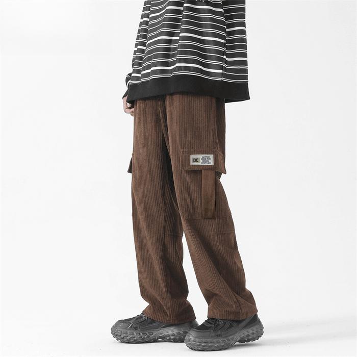 Tamp-X Celana Cargo Corduroy Loose Stretch Pria Model Korea Hitam Oversize Jumbo - Panjang - hijau, S