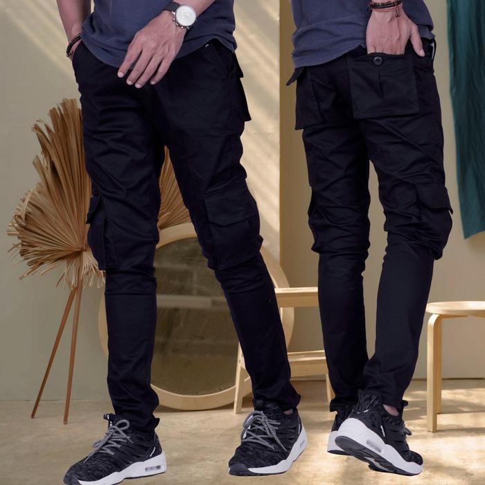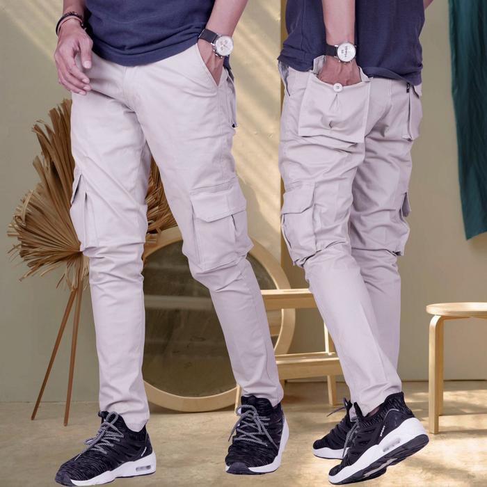 Celana Cargo Panjang Pria Slim-fitting Santai Polos - Mocca, S (27-28)