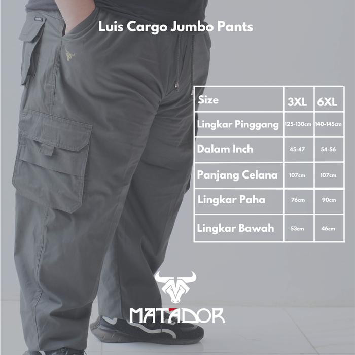 Celana Panjang Pria Jumbo Cargo Big Size 6XL Bisa Buat Jongkok by MATADOR - Luis Pants - LUIS HITAM, 3XL