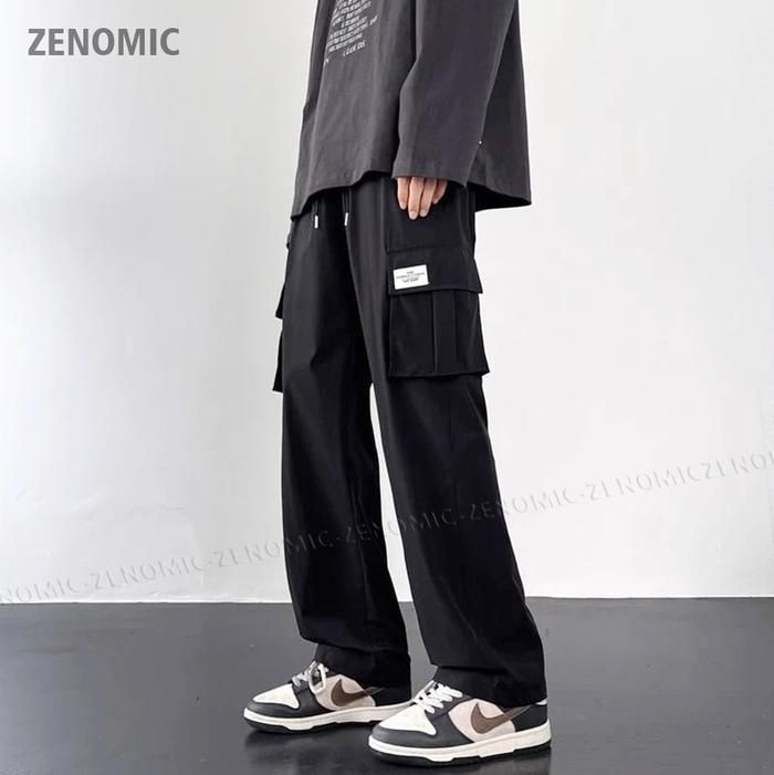 SALE- Celana Cargo Panjang Pria Oversize Loose Pant Korean Style Baggy - Hitam, S