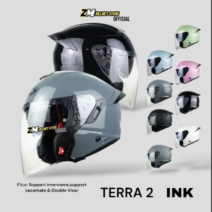 TERMURAH✅ Helm INK TERRA 2 Solid Half Face Kekinian SNI DOT Free Spoiler