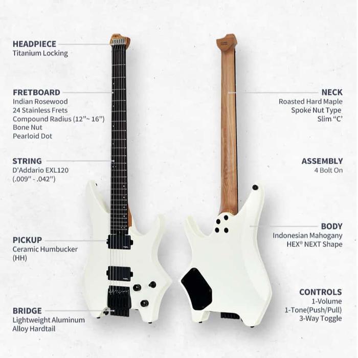 HEX N400 GUITAR ELECTRIC HEADLESS MODEL WHITE , BMJ