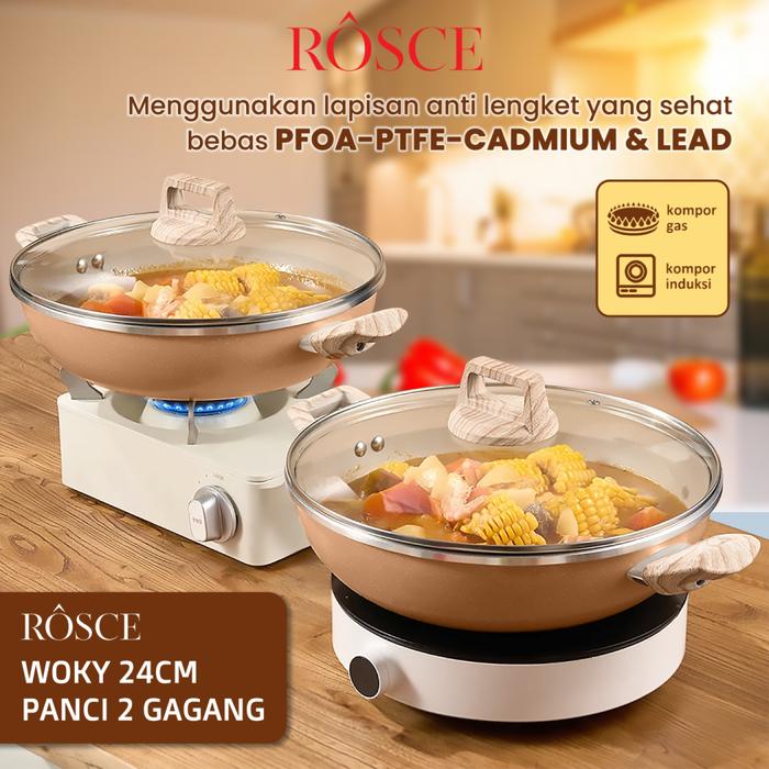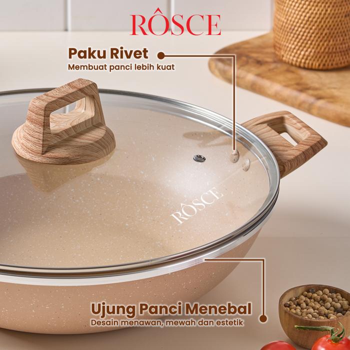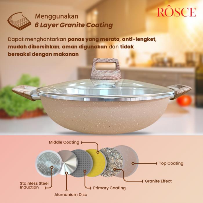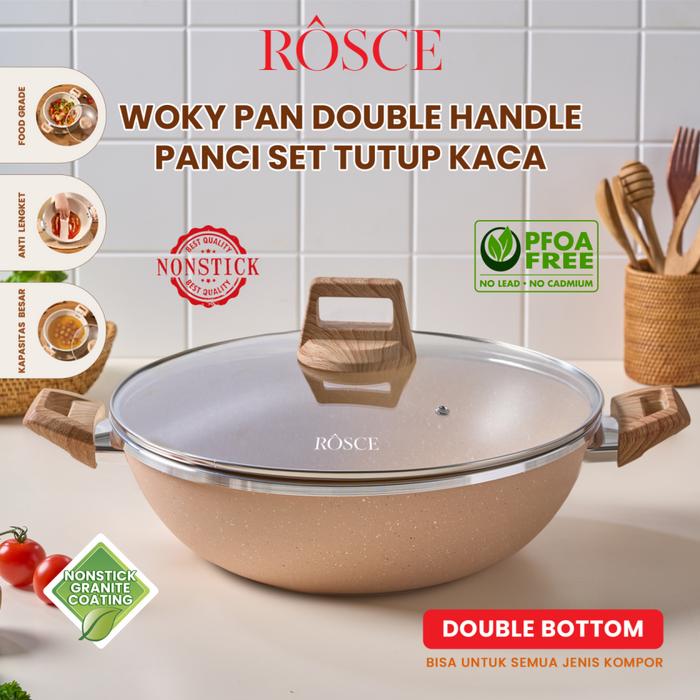 wajan 2kuping ROSCE WOKY 24CM wok pan nicebrown panci granit INDUCTION BOTTOM Panci anti lengket