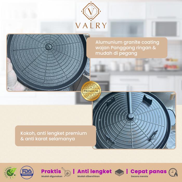 BULGOGI GRILL PAN 32CM Wajan Pemanggang Anti Lengket BBQ Marble Granite Valry