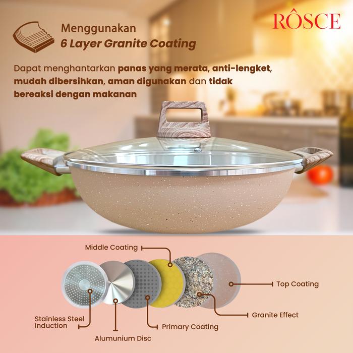 (SPECIAL PROMO) wajan 2kuping ROSCE WOKY 24CM panci wok pan nicebrown anti lengket