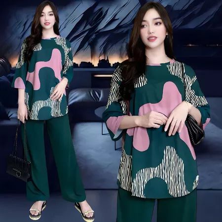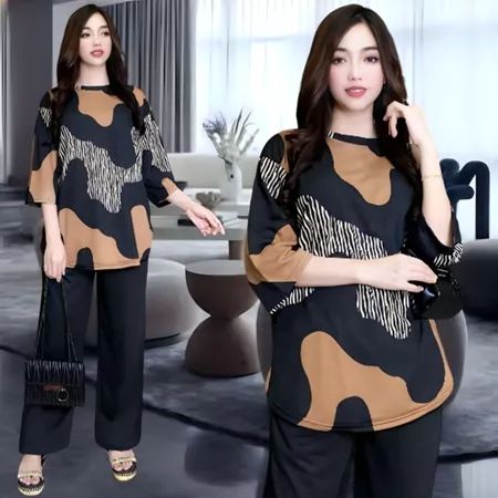 TELSA SETELAN WANITA LD 120 & LD 130 CELANA LURUS DAN ATASAN OVAL BELAHAN KIRI DAN KANAN OVERSIZE WANITA CELANA POLOS