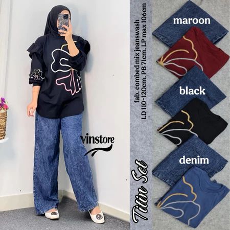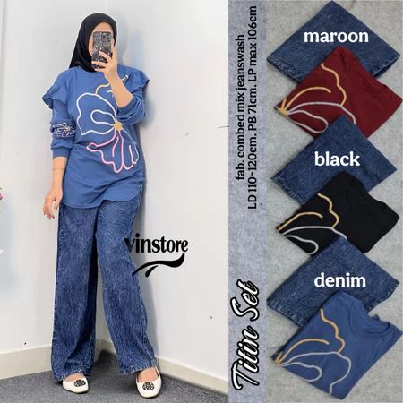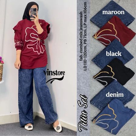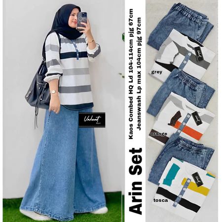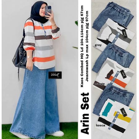 arin setelan celana jeans viral titin one set celana kekinian jea
